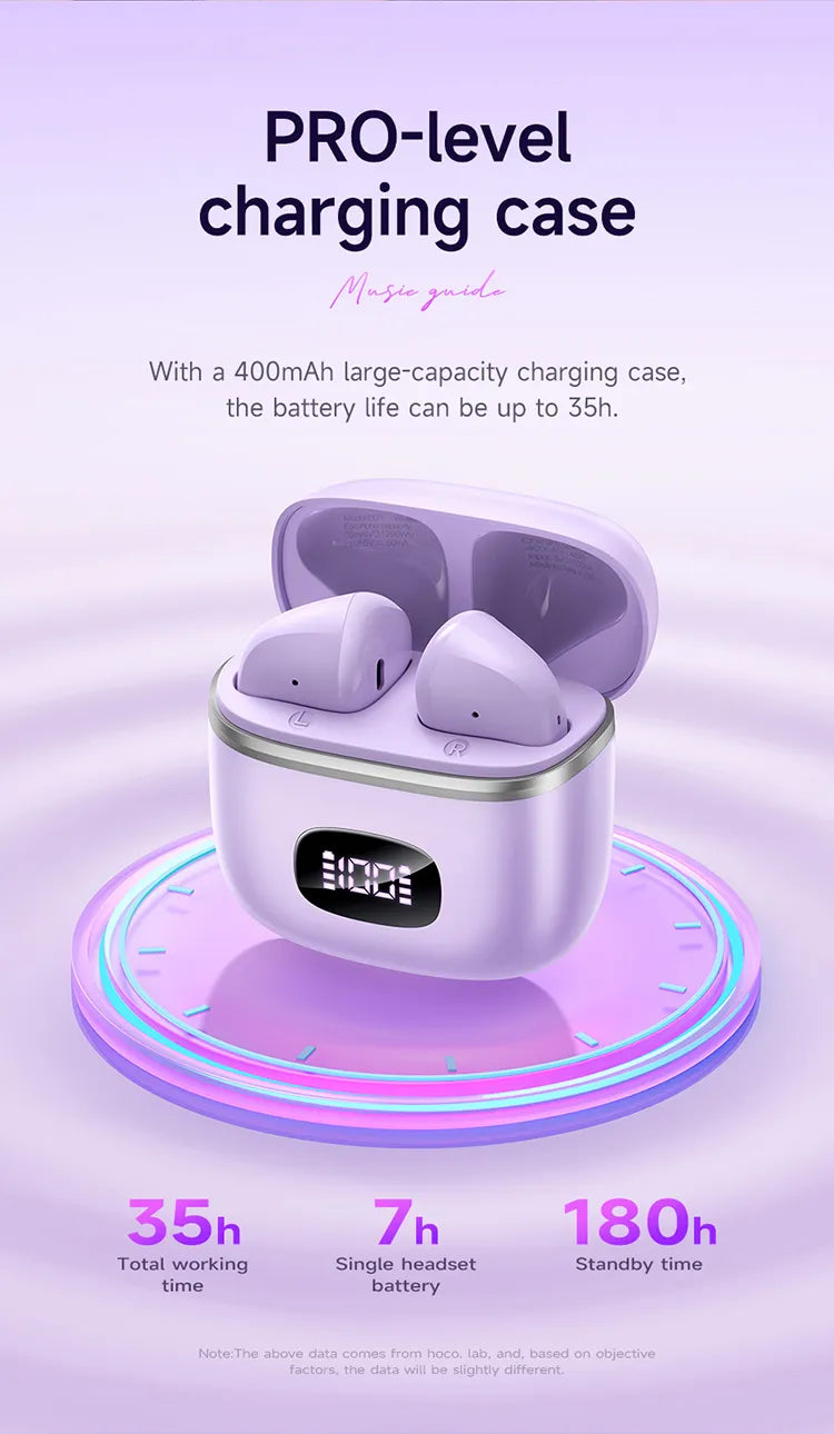 تم تجهيز علبة الشحن بشاشة LED رقمية تعرض بوضوح الطاقة المتبقية، مما يسمح لك بمراقبة عمر بطارية سماعات الأذن الخاصة بك.
