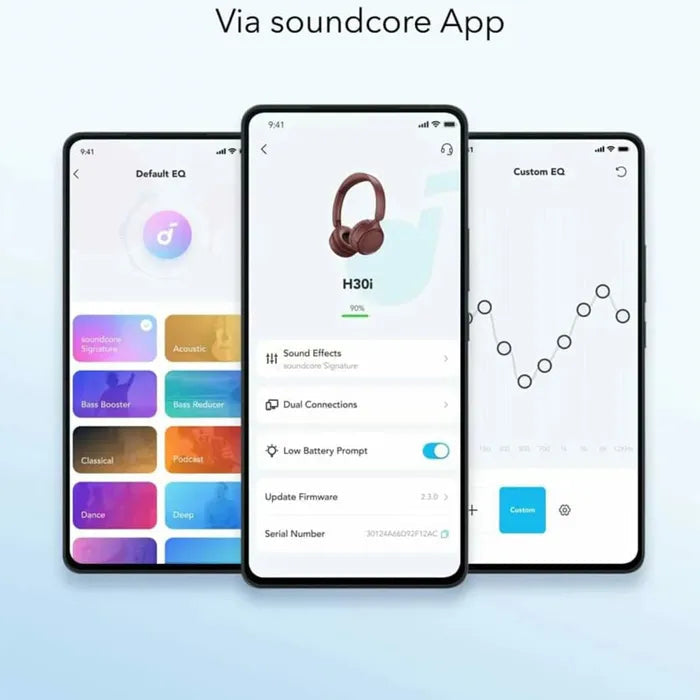 تتميز سماعات الرأس اللاسلكية Soundcore H30i بمحركات كبيرة الحجم مقاس 40 مم تعمل باستمرار على توفير صوت قوي، إلى جانب صوت جهير معزز، لإضفاء الحيوية على موسيقاك.